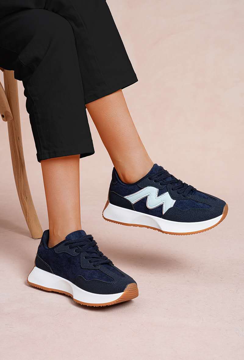 Distinctives et tendance, ce basket femmes est complété par un contrefort arrière couleur bleu marine et coté extérieur motif M gris. Grâce au son mélange harmonieux, ces baskets offrent un look à la fois raffiné et confortable.