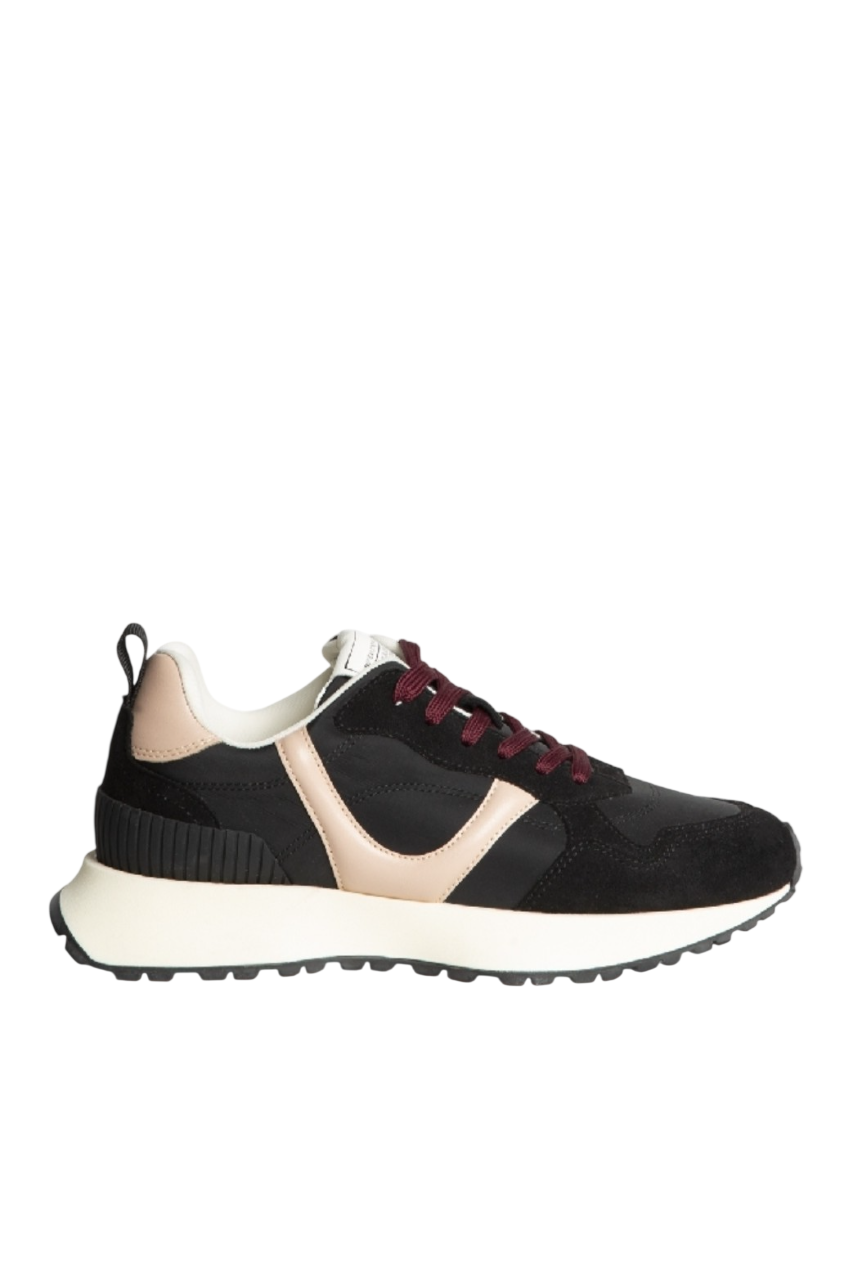 Chaussure de sport type running. Semelle crantée souple et fermeture à lacets à six œillets, assure confort, maintien et une allure dynamique au quotidien. Tige combinant matières et coloris.