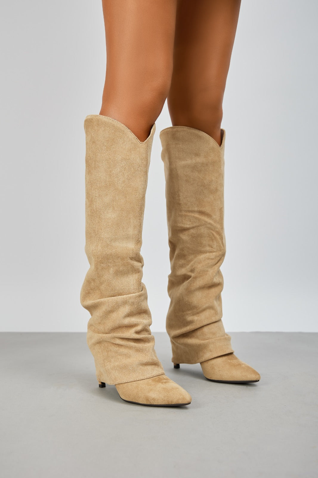 Bottes guêtres à talon aiguille en suédine, Taupe