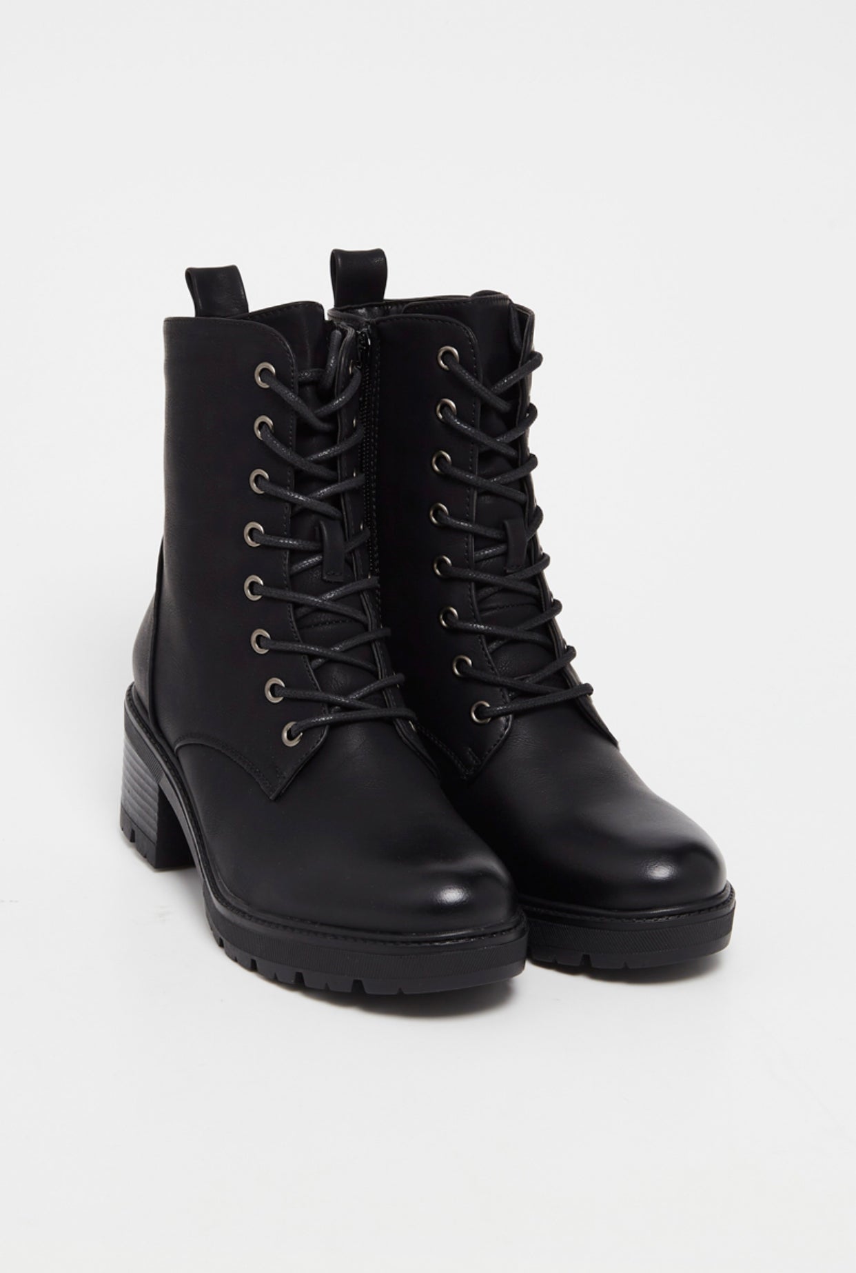 Bottines à talons et lacets Forme bottine style montagne Fermeture zippée sur le côté intérieur.