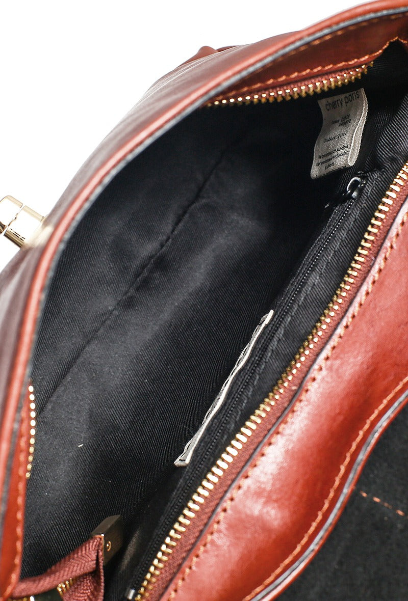 Sac cartable Cecilia, avec rabat poignée et tourniquet en cuir de vachette collet.