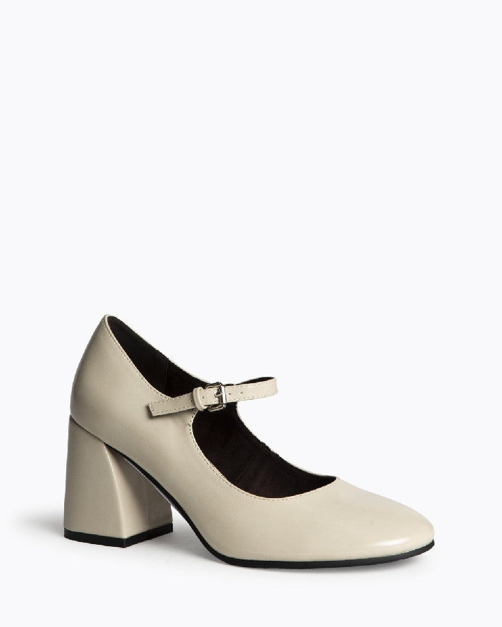 Escarpin avec bride bout carré talon bloc, Nude