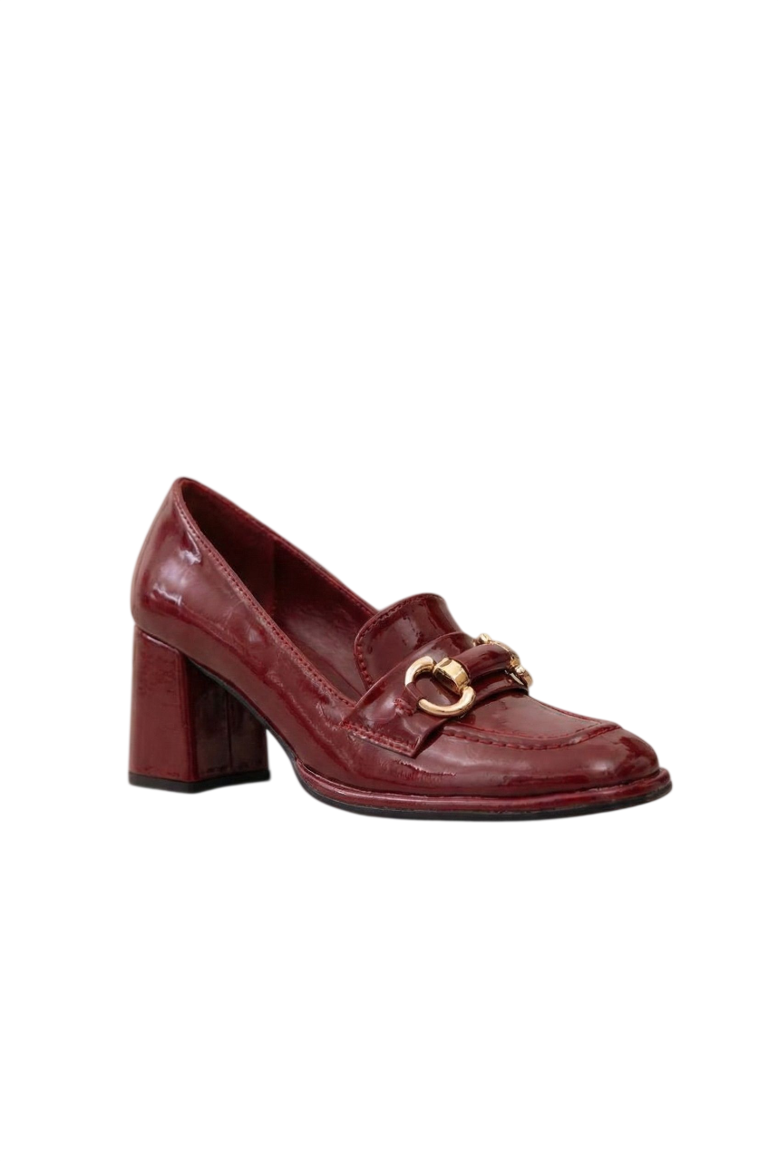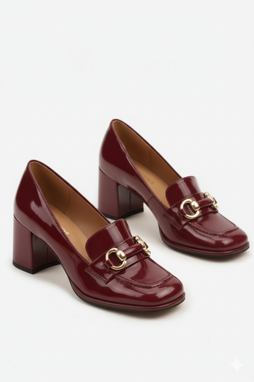 Mocassins femmes à talon bloc, Bordeaux